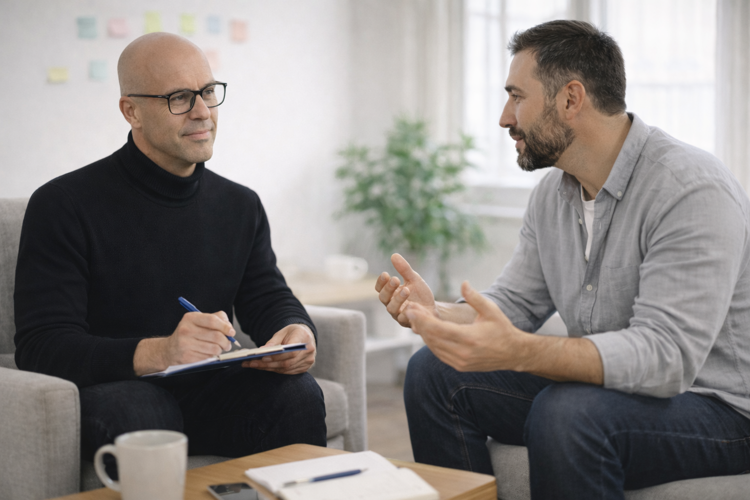 Ett tryggt individuellt samtal för stress, oro och överväldigande känslor – utan förberedelse.